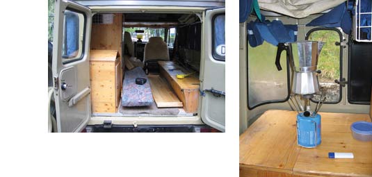 Campingstühle ihren Platz. Beim linken Schrank hinter dem Beifahrer